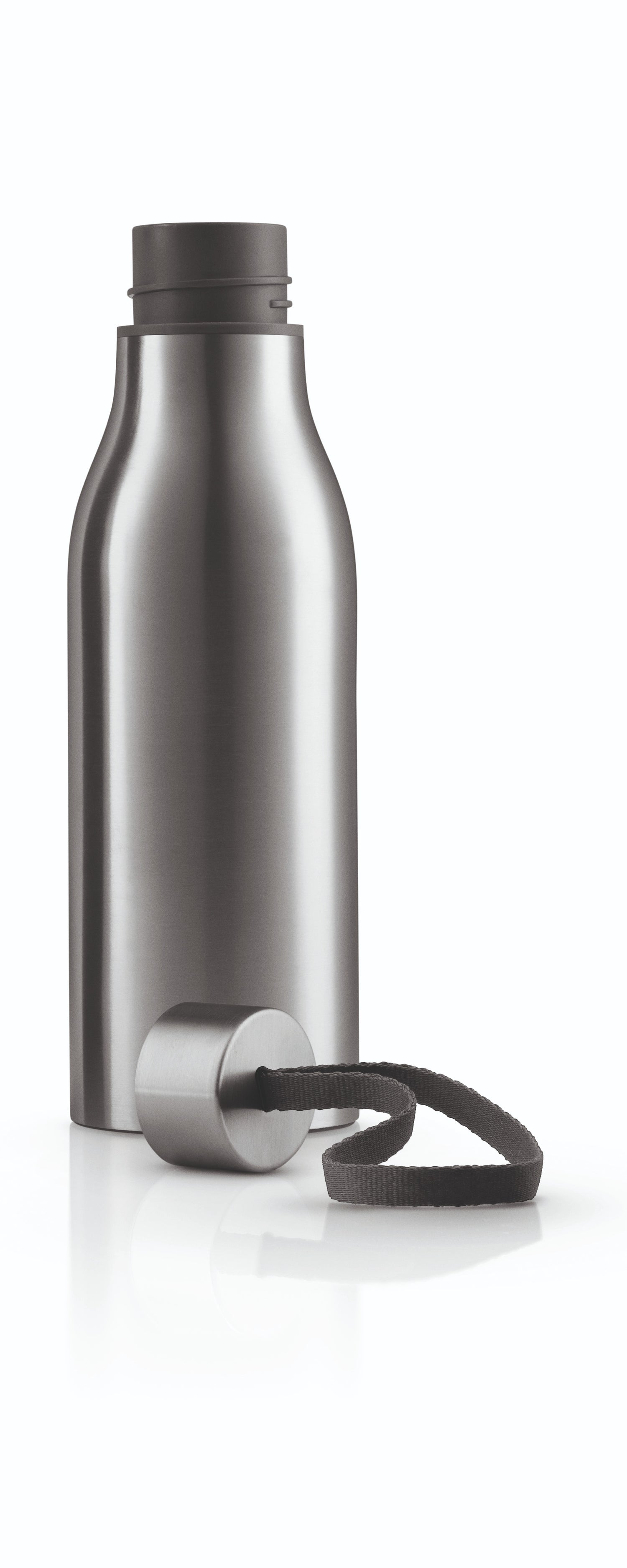 Fill the Eva Solo thermo flask with cold or hot beverages and take it with you to always have a refreshing drink to hand. The flask is a true double-sided thermo flask from dishwasher-proof stainless steel. The screw-on top and strap, however, must be washed by hand. Capacity: 0.5 l.