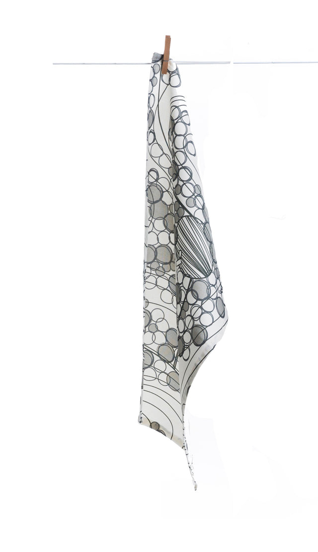 A high-quality kitchen tea towel featuring the 'Forest' design in a muted grey color palette, offering a subtle, elegant nature motif.