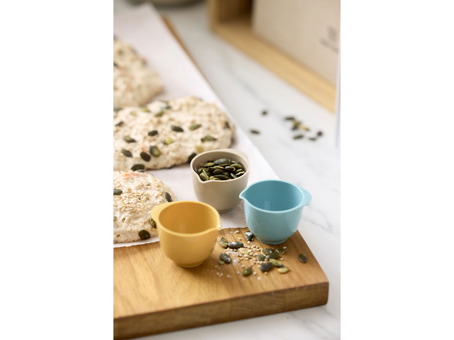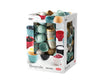 The box contains 175 Margrethe mini bowls that can be used as egg cups. in the Culinary Soul colour theme, distributed as 65 x nordic green, 65 x humus, and 45 x curry. The mini bowls hold 25 ml, are moulded from ABS plastic, and are stackable. Suitable for dishwasher, microwave, and freezer. The Margrethe bowl was designed for Rosti by Sigvard Bernadotte and Acton Bjørn-A design studio in Copenhagen, and in 1954, with the royal family-A permission, it was named after Queen Margrethe II.