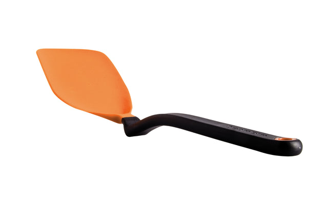 The flexible, large head slides easily under food for a clean lift or flip that keeps the most delicate food in one piece. Chopula's multi-curved head design allows you to scrape every corner of any pan. Chopula's unique head shape lets you chop food in a hot pan while keeping your hand up and away from heat. Keep benches or counter tops clean and food hygienic thanks to the clever bend in Chopula's handle which holds the head up and off your bench.