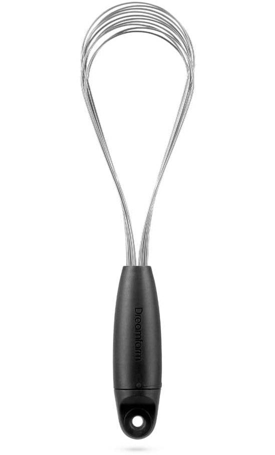 The flisk is a balloon whisk that can be used for whipping and shallow sauces also twists and is super versatile as can be twisted into a completely flat wisk for deglazing. Is perfect for any kitchen as is great for space-saving storage that wont get tan