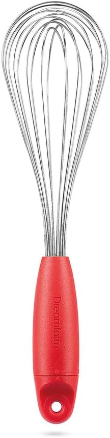 The flisk is a balloon whisk that can be used for whipping and shallow sauces also twists and is super versatile as can be twisted into a completely flat wisk for deglazing. Is perfect for any kitchen as is great for space-saving storage that wont get tan