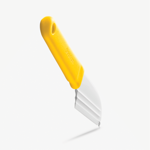 The 3 in one red knibble knife is a cheese knife that also forks nibbles, The unique barbed blade creates air pockets to stop cheese from sticking, also perfect for serving as the stainless steel fork dosent extend beyond the blade length for safety.the r