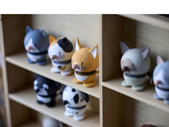Calm, round and pretty cool. Inspired by the classic Blue American Shorthair, this Hoptimist cat comes in a greyish-blue colour.A delightful gift idea for anyone who loves cats. Even the real cat in the house will probably be unable to resist giving the new playmate a gentle nudge.H 5.3 cm, D 4.2 cmWith a strong belief in the power of smiles, Gustav Ehrenreich founded his happy Hoptimist movement in the late 1960s. The aim was to create a figurine that would serve as a constant reminder to stay positive and optimistic. For although the 1960s are often referred to as the “Swinging Sixties”, the decade was marked by unrest. This made Ehrenreich’s design a welcome spreader of joy in an otherwise turbulent time.Bimble and Bumble represent the very first Hoptimists designed by Ehrenreich: A girl with smiling eyes wearing a dress and an alert, inquisitive boy with a tuft on his head. Today, the happy Hoptimists are part of Danish design history and they spark joy all over the world. The figurines are available in four different sizes and in a wide range of colours that spread plenty of playfulness, cheer and happiness.There is a Hoptimist for every occasion and every person.