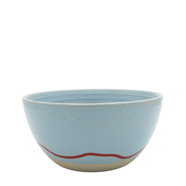 Elevate serving with this Stoneware Bowl by Keith Brymer Jones. The 600ml capacity in sky blue with striking red wavy line combines durability (dishwasher/microwave-safe) with artisanal aesthetic. A versatile addition to the designer's stoneware range.
