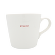 Embrace indulgence with this Large Red Greedy! Bucket Mug from Keith Brymer Jones' humorous Word Range. The cheeky confession is hand-stamped in bold red onto white porcelain - perfect for unapologetic enthusiasts. The 500ml capacity satisfies extra-large cravings, with comfortable handle. Dishwasher and microwave safe. A fun gift for foodies or a personal reminder to enjoy life's pleasures. Keith's craftsmanship combines quality with lighthearted self-awareness.
