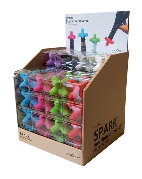 Spark - The color pack assortment of 64 spark bottle stoppers (8 colors x 8 pcs) + display rack