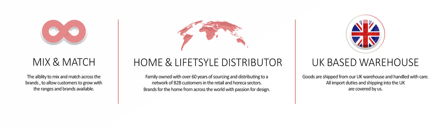 Established for over 50 years, we exclusively manage and distribute a diverse portfolio of design-led home & giftware across the UK, supplying an incredible mix of both independent and national retailers including John Lewis, Lakeland, Harvey Nichols and Asos.