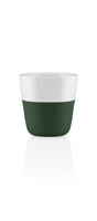 Perfectly-sized espresso cups for enjoying those small, strong shots of coffee. The tumblers are made of porcelain with a silicone sleeve for non-slip grip.