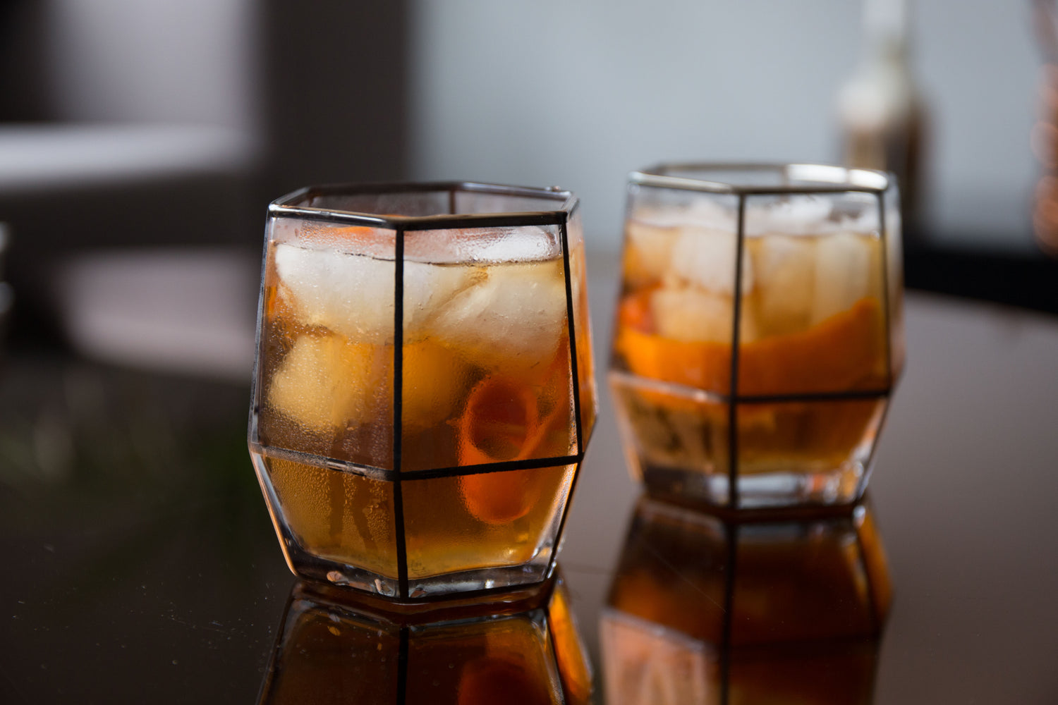 These black hand-blown modern geometric glasses are designed to bring a modern and minimalistic twist to your everyday drink set.